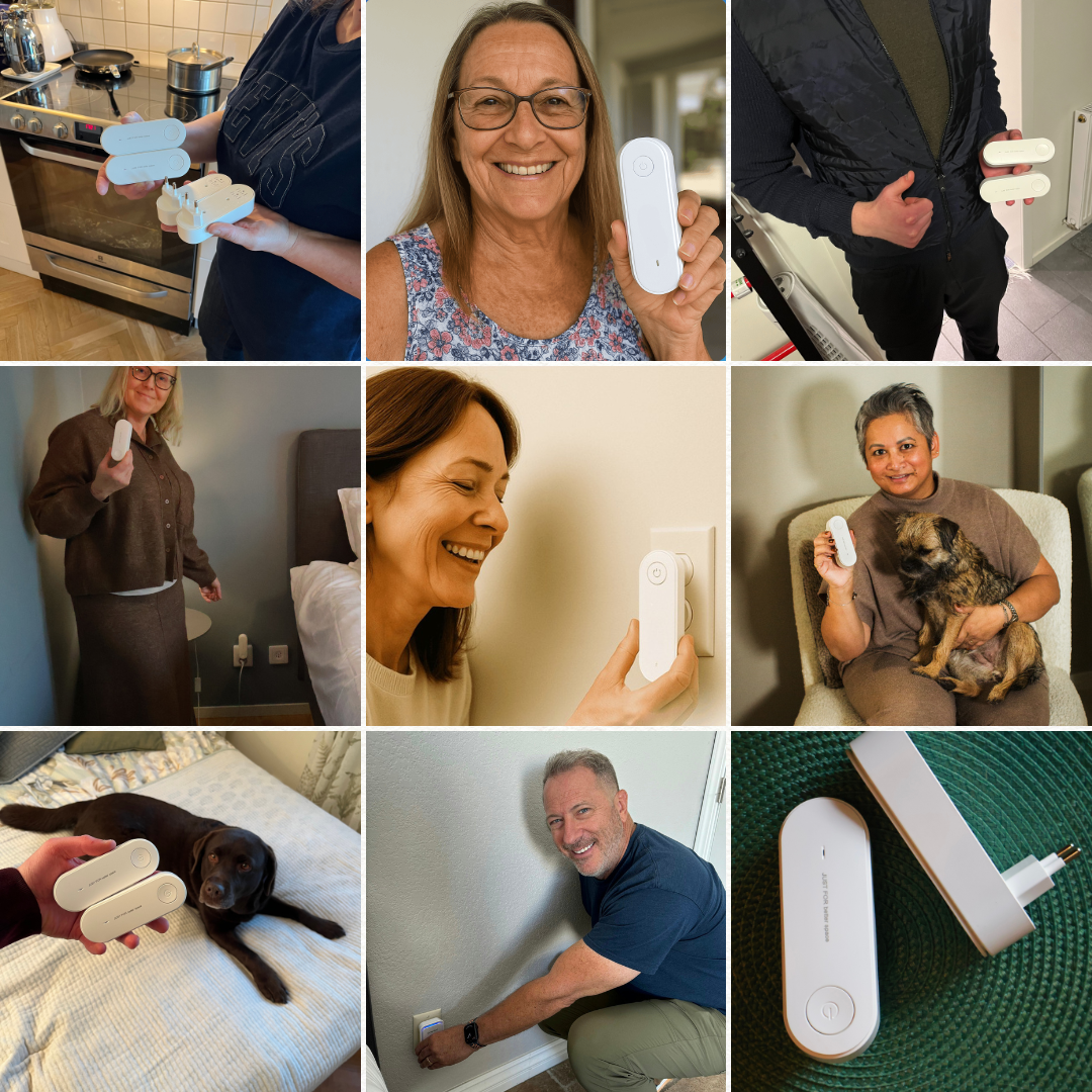 Med MiteMinder™ sprids negativa joner som binder allergen och mikropartiklar så de faller ur andningszonen – helt utan filter, spray eller kemikalier.