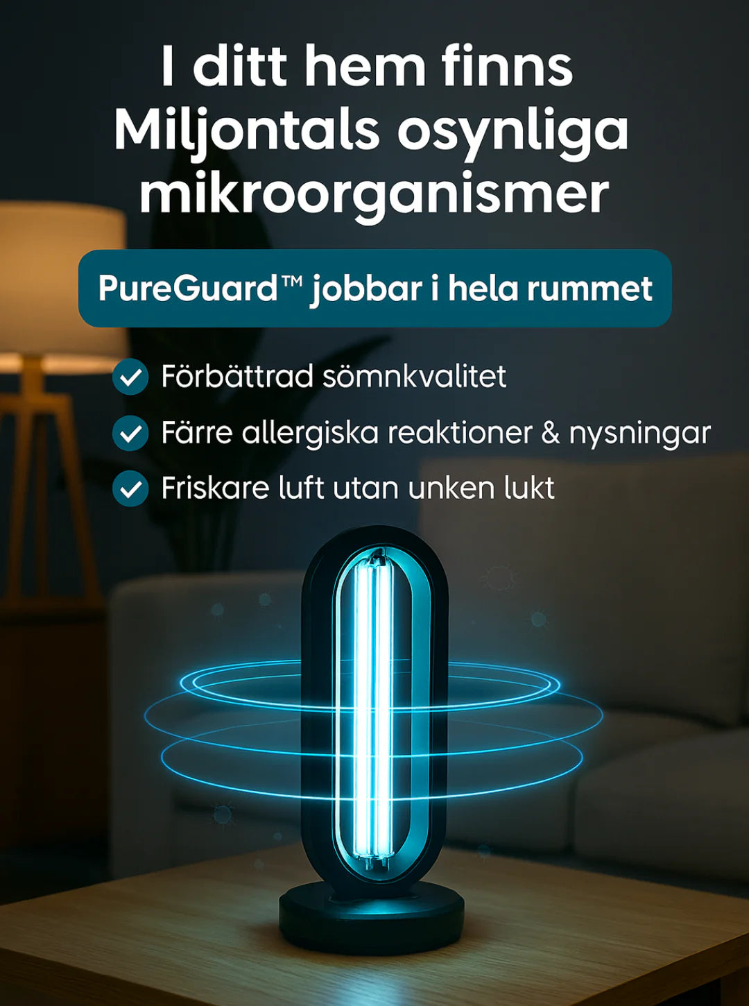 Det var därför vi utvecklade PureGuard™ - som på under 60 minuter neutraliserar lukten och eliminerar de dolda mikroorganismerna i ditt hem!